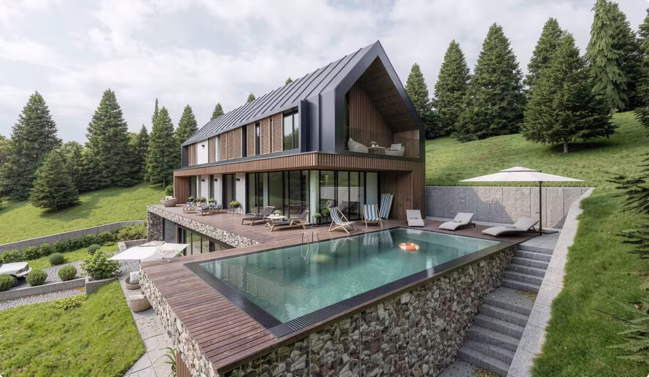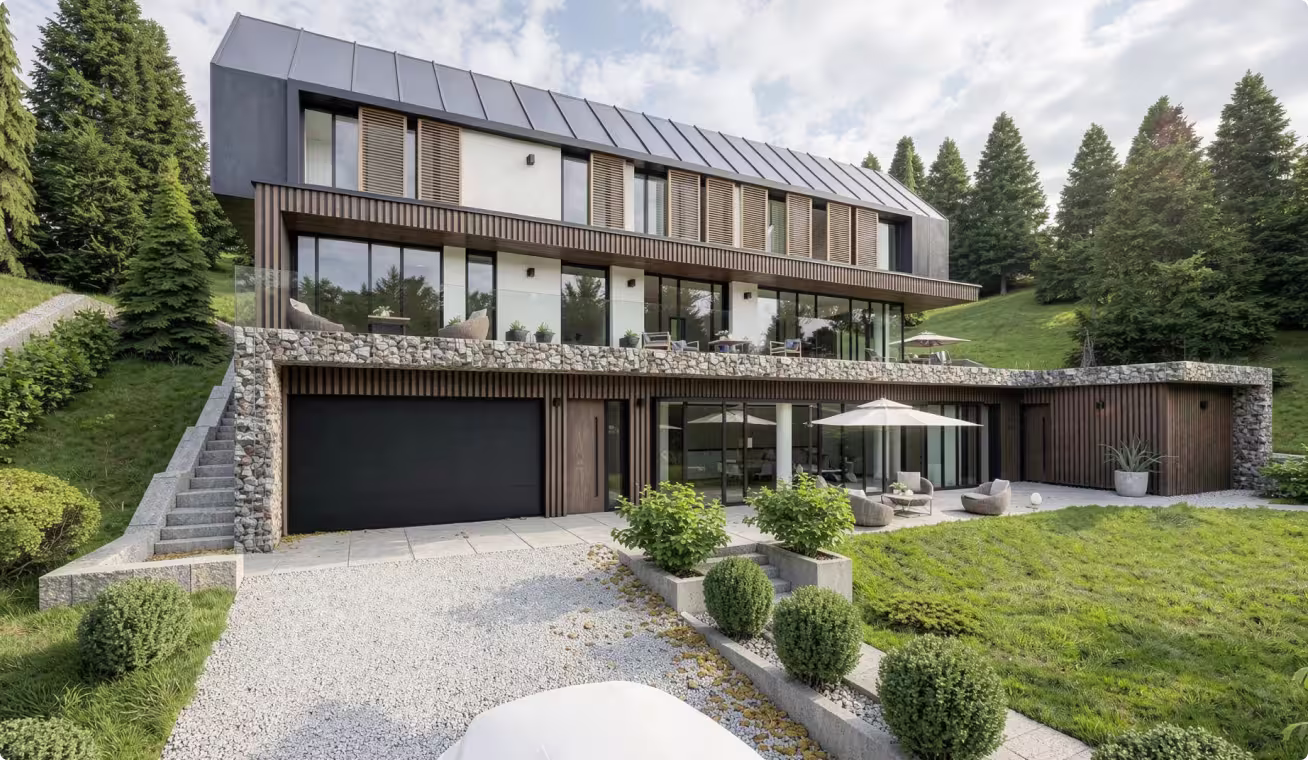 Smeštena na samim obroncima planine Zlatar, ova porodična vila predstavlja arhitektonski odgovor na izazovan i strm teren sa visinskom razlikom od čak 25 metara. Veliki nagib tla iskorišćen je kao prednost za pravilno pozicioniranje objekta, čime su otvoreni široki vidicika jugozapadu. Objekat je projektovan tako da minimalno narušava prirodni ambijent – skoro90% parcele zadržano je u svom izvornom stanju, pod autohtonim visokim rastinjem.